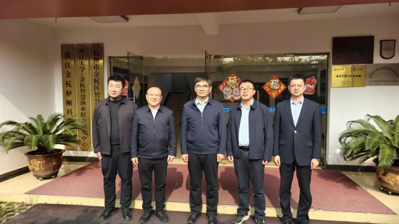 11月14日,全国水产技术推广总站站长韩刚在浙江省水产技术推广总站站长贾永义研究员、省水产技术推广总站科研推广科科长贝亦江高级工程师的陪同下到位于余杭区仁和街道的浙江大学余杭智慧渔业联合研究中心考察调研。