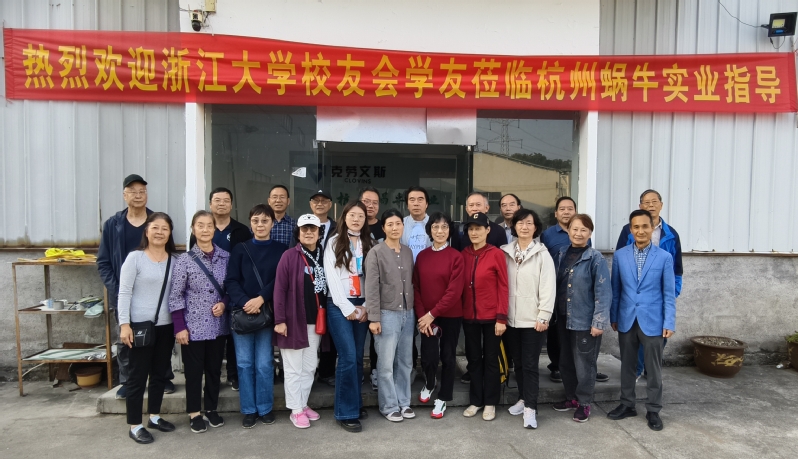 上午,校友们漫步在蜿蜒曲折、参天大树伞盖的小径,欣赏着古村落一幢幢典雅别致的乡村民居,纷纷在金叶满枝头的古银杏树前拍照留念。午后,在参观了指南村古村落后,校友们在农电99届校友严卫星全家的陪同下,乘车来到天目山脚下的杭州蜗牛实业有限公司严卫星校友企业参观考察,听取了严卫星校友自十多年前在临安区开启创新创业并实现锅具产品出口的情况介绍,并在厂区合影留念。