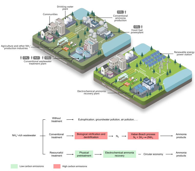 图1:利用电化学技术直接回收污水中的氨是可持续的污水处理和资源化途径,有助于实现污水行业的净零排放与循环经济。