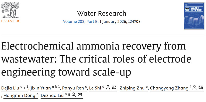 近日,浙江大学生物系统工程与食品科学学院刘德钊研究员课题组联合中国科学技术大学环境科学与工程系张常勇教授、浙江大学环境与资源学院史乐研究员在水环境领域顶刊《Water Research》上发表了题为《Electrochemical ammonia recovery from wastewater: The critical roles of electrode engineering toward scale-up》的综述文章,从电极工程的视角,系统总结了电化学技术用于污水(例如猪粪水等畜禽养殖废水)中氨回收的研究历程和最新进展,并为电化学氨回收工程的规模化提供了见解。