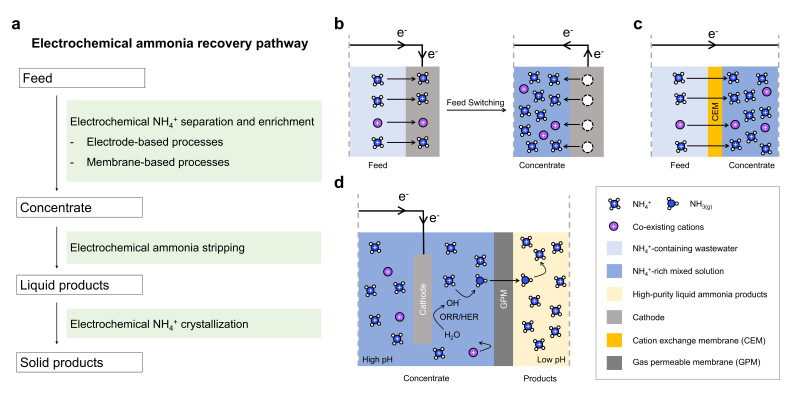 图2:电化学氨回收技术路线与关键技术单元原理。